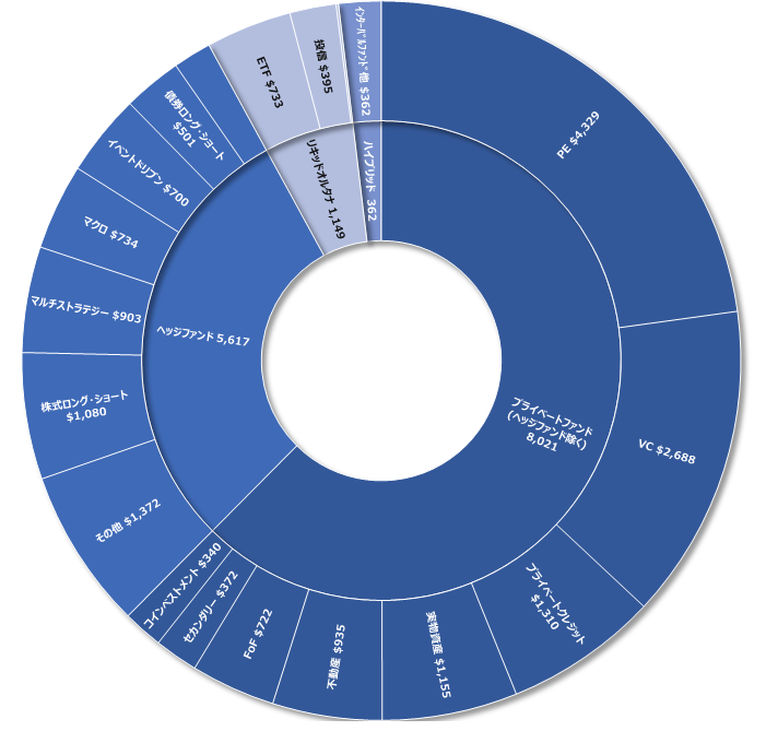 ●世界のオルタナティブ資産残高の内訳(2024年末)