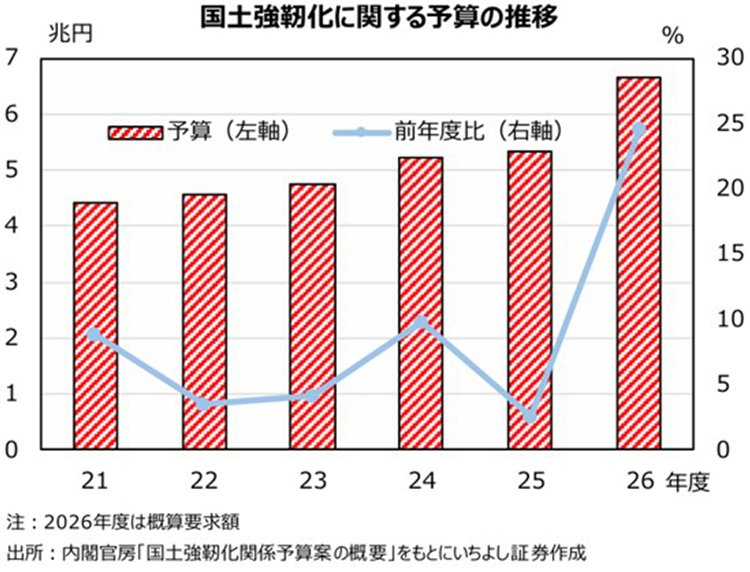 T:2026年度から、国土強靭化に関する予算が急激に伸びているのですね。