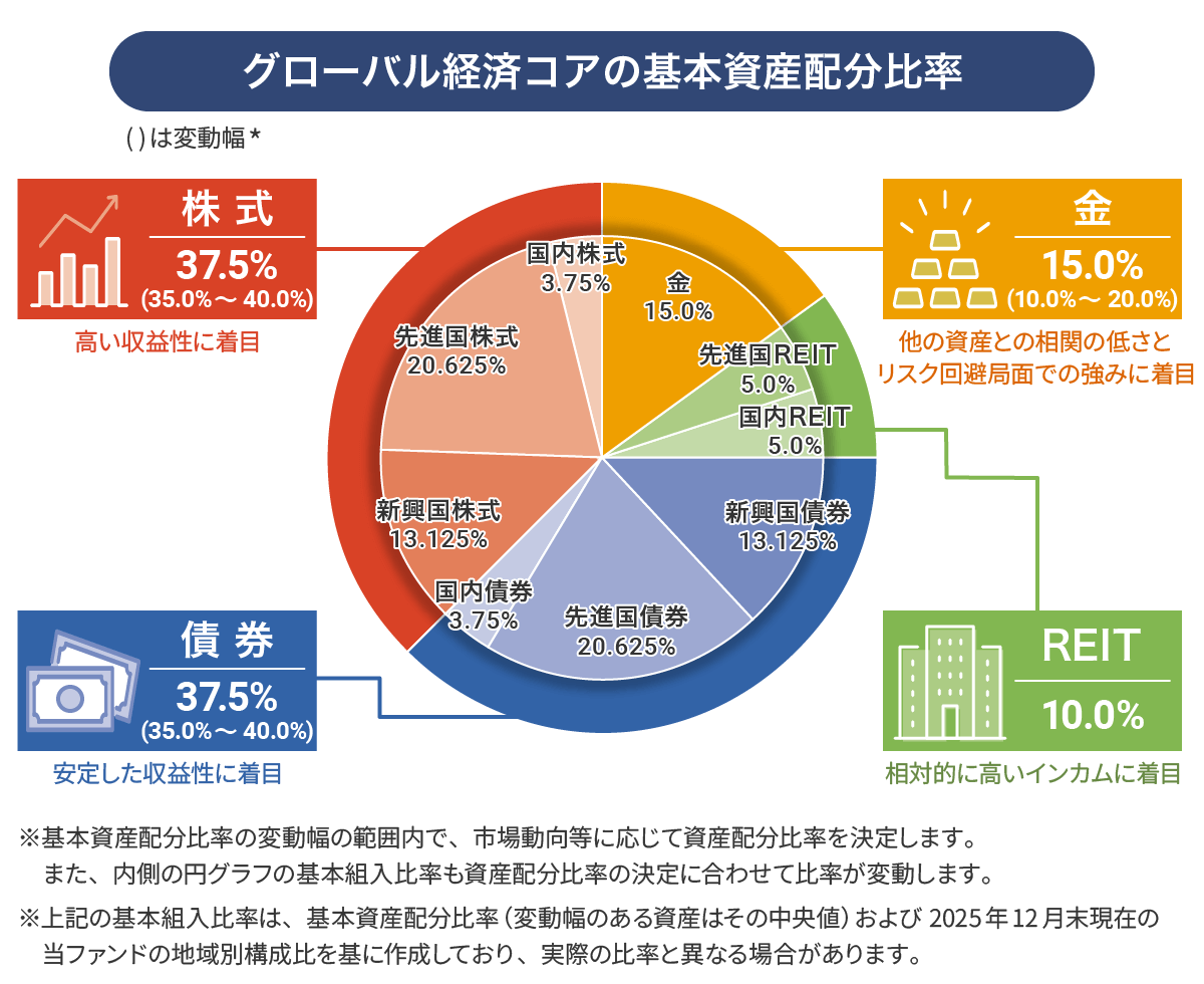 「グローバル経済コア」は、多資産分散を1本で実現し、世界経済の成長を取り込みながら、安定性も意識した運用を目指すことができます。長期の資産形成の一助となれば幸甚です。