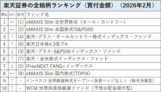 ※楽天証券サイト「投資信託」「全銘柄ランキング(買付金額)」に基づいて編集部作成。期間:2026年2月1日~2月28日。