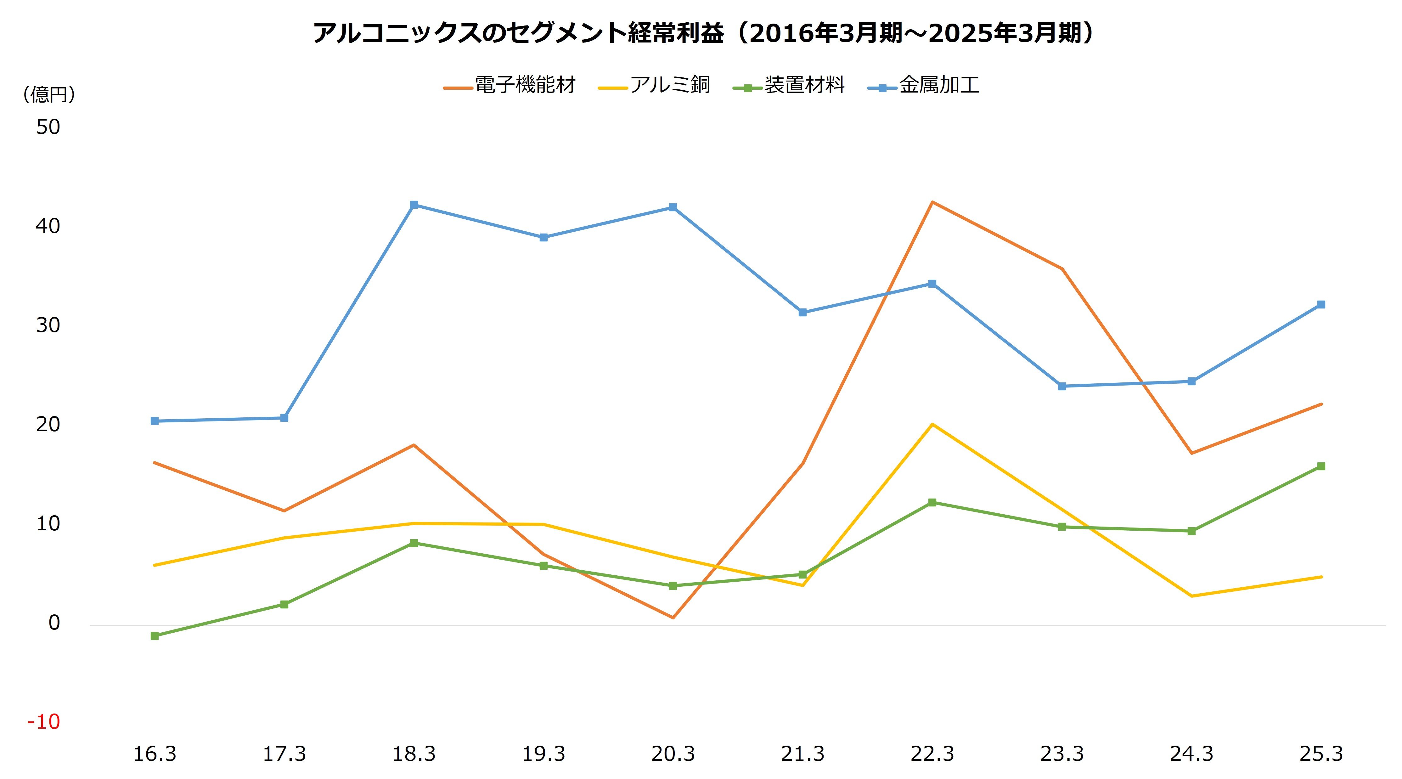 低採算事業への打ち手は構造改革です。アルミ銅や装置材料の一部は再編する計画で、26年2月にはアルミ銅の子会社4社(林金属、アルコニックス・三高、平和金属、ACメタルズ)の統合を発表しました。子会社を集約することで効率化を図り、収益力を改善させます。