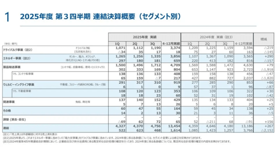 今期の利益を押し下げているのは、まさにこのコンテナ船事業の苦戦なのです。