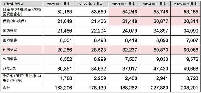 〔図表3〕アセットクラス別資産額の推移(金額単位:億円)