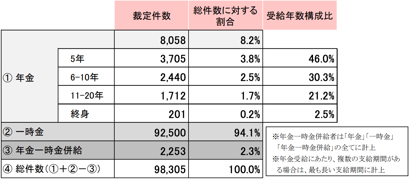 なお、新しい情報として年金の受給年数別の選択状況も公表されました。受給年数5年が46.0%、6-10年が30.3%、11-20年が21.2%、終身が2.5%であり、短い期間の方が選好されています。