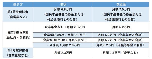 井出 iDeCoの掛金上限額ですが、2026年12月に施行される年金制度改正法による変更点を見てみましょう。