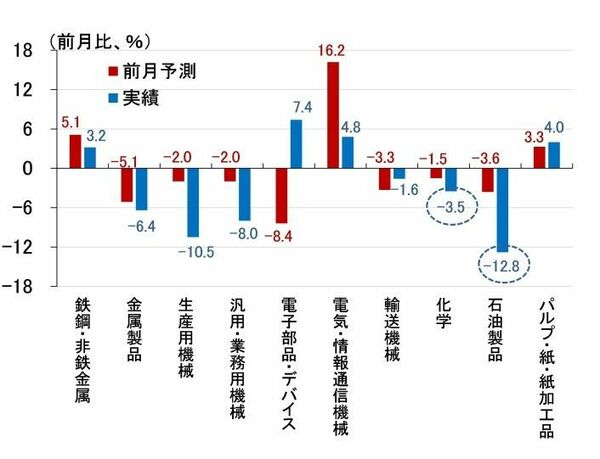 石油製品や化学の予測指数は大幅下振れの公算