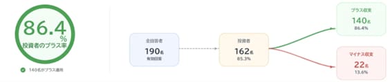実際につばめ投資顧問の会員データを見ても、入会1年未満では成績はトントンなことが多いですが、3年経つと90%以上、5年経つと95%以上の人がプラスの収益を得ているという明確な相関関係が出ています。