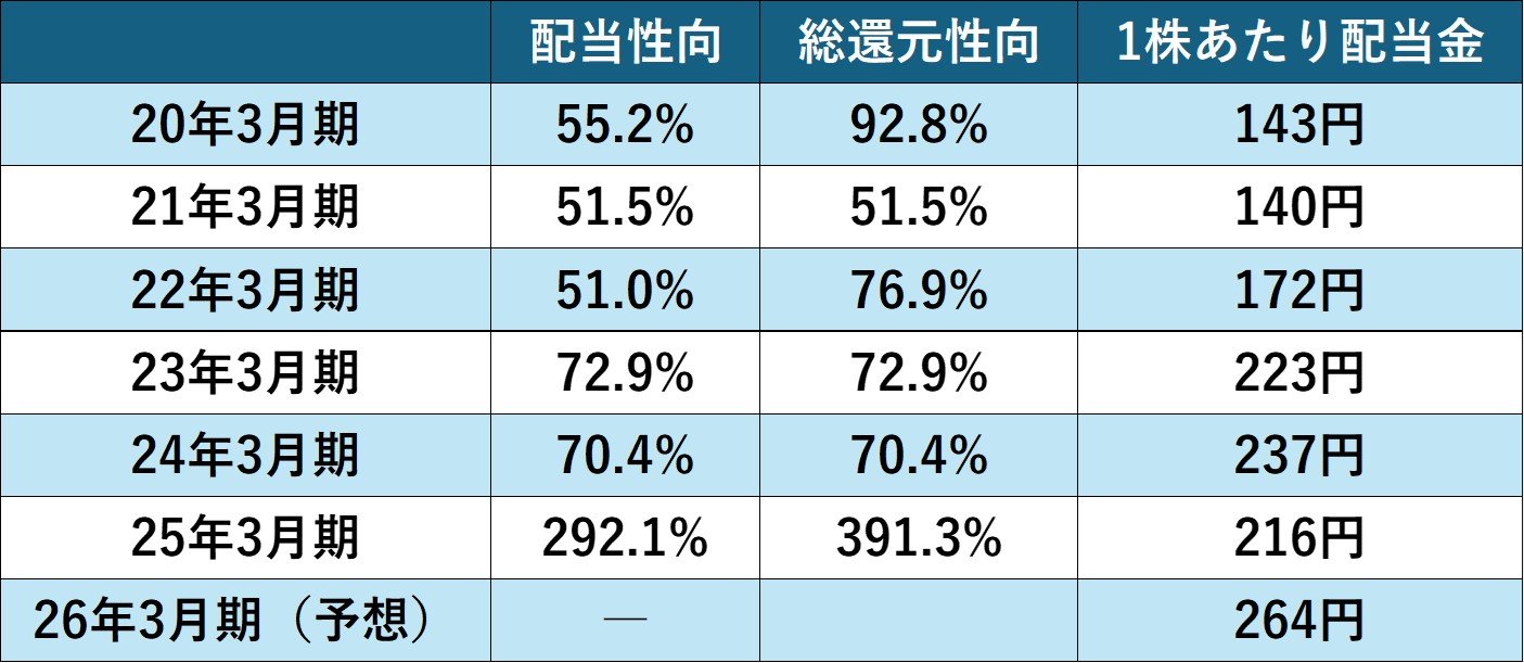【株主還元の推移(20年3月期~26年3月期)】
