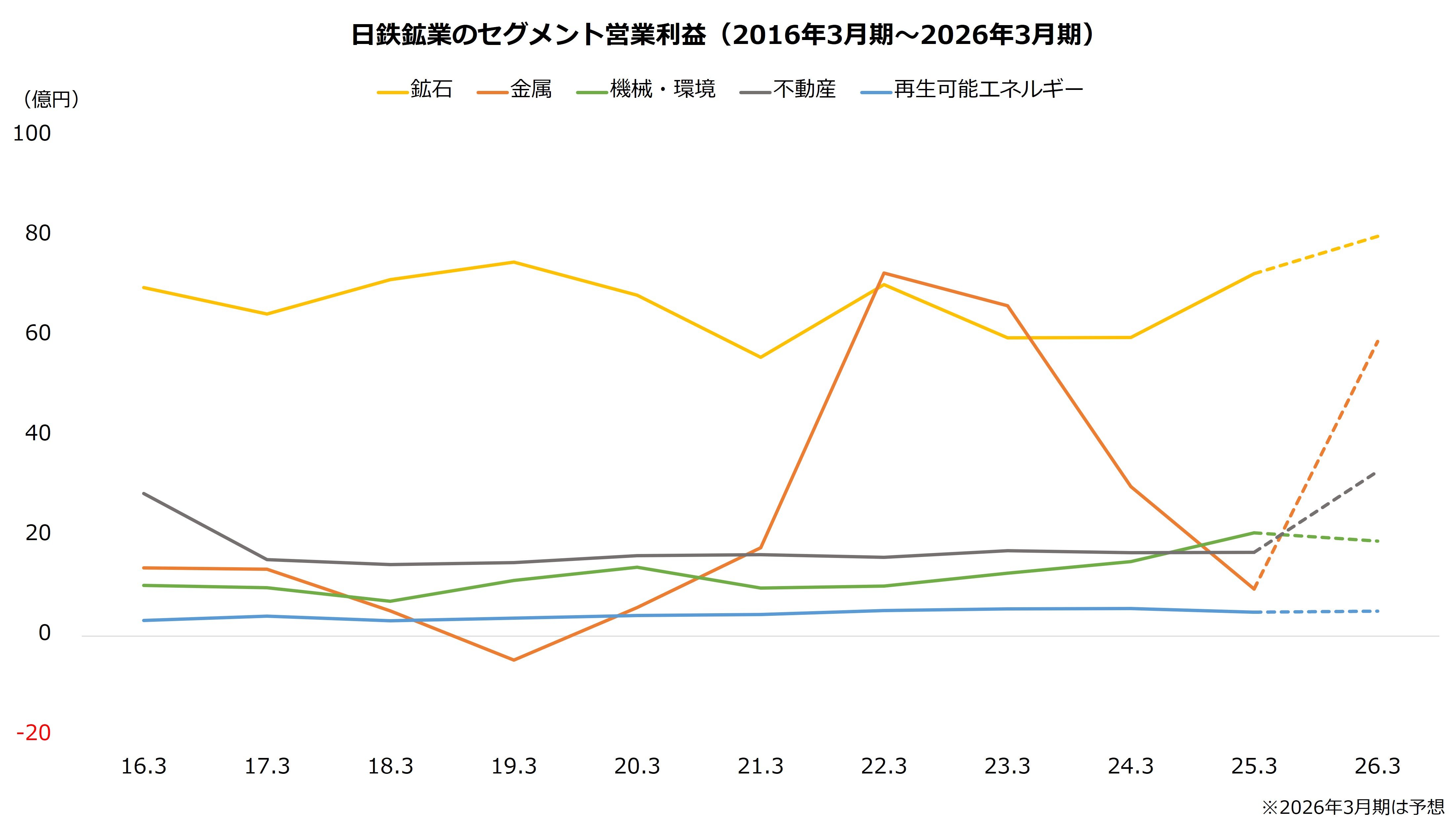 鉱山株は一般に市況影響が強く業績が変動しやすいところ、日鉄鉱業は相対的に安定しており、直近10年で赤字を出したことはありません。26年3月期は売上高が2000億円を突破し、営業利益は10年で最高となる165億円に達する見通しです。