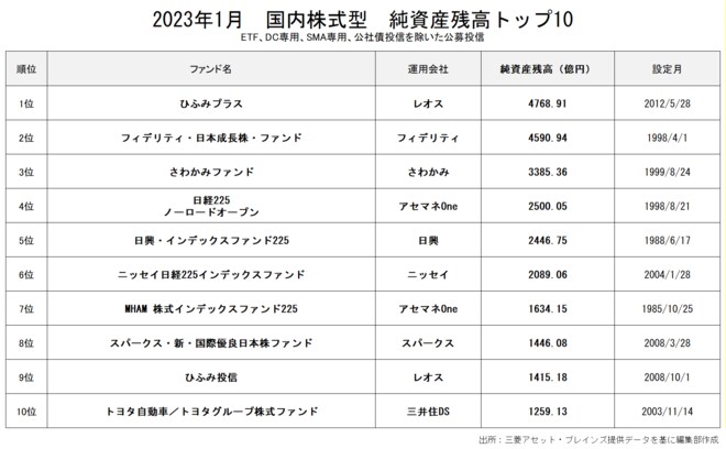 1月の純資産残高1位は「ひふみプラス」(4768.91億円)