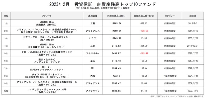 2月の純資産残高1位は「eMAXIS Slim 米国株式(S&P500)」(1兆8163.34億円 )