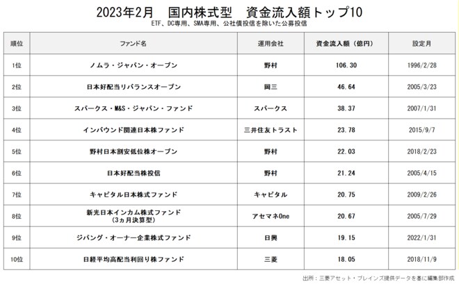 2月の資金流入額1位は「ノムラ・ジャパン・オープン」(106.3億円)