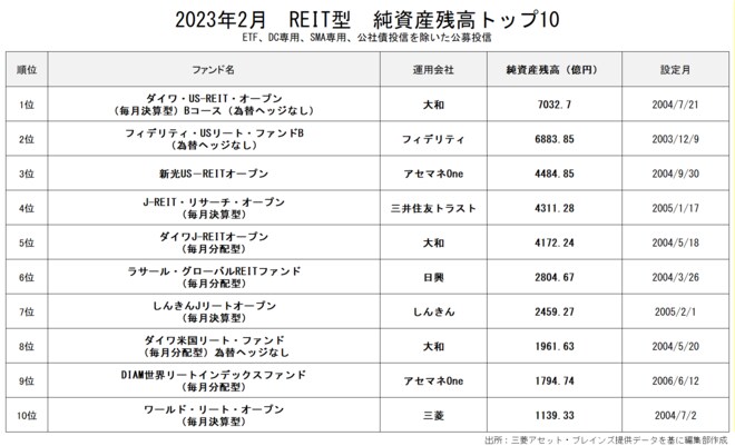 2月の純資産残高1位は「ダイワ・US-REIT・オープン(毎月決算型)Bコース(為替ヘッジなし)」(7032.7億円)