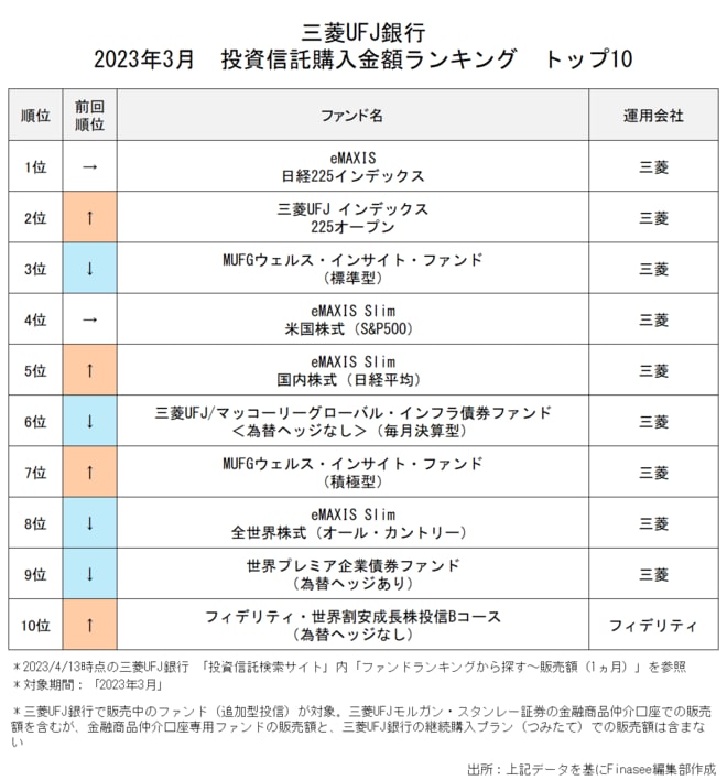 2023年3月、三菱UFJ銀行で多くの資金を集めたのは以下のファンドだった。
