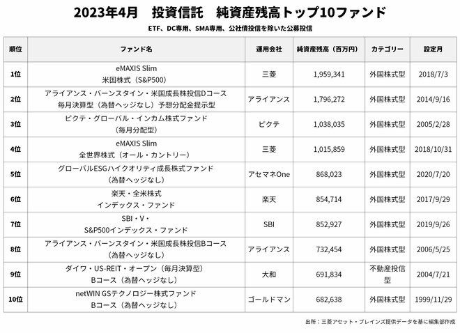 4月の純資産残高1位は「eMAXIS slim米国株式(S&P500)」(1兆9593.41億円)