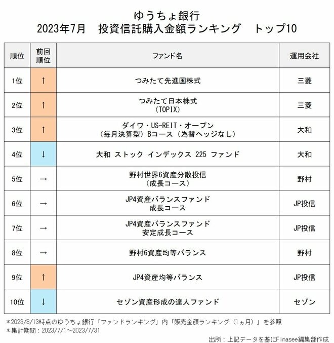 2023年7月、ゆうちょ銀行で多くの資金を集めたのは以下のファンドだった。