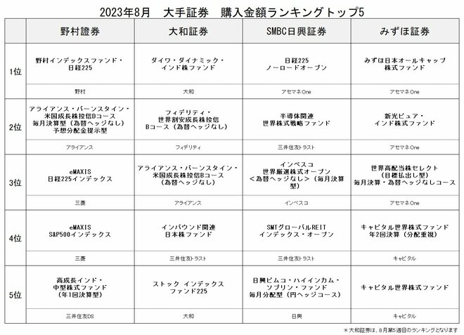 ただ、野村證券でランキング5位の「高成長インド・中型株式ファンド(年1回決算型)」は9月8日を最終受付日とし、新規購入の受付をとりやめている。これは、同ファンドの運用資産規模を、適正範囲に維持するための措置で、信託金の限度額が2本(「高成長インド・中型株式ファンド」「高成長インド・中型株式ファンド(年1回決算型)」)あわせて4000億円に対し、9月1日時点の2本合計の残高は3702億円だったためである。ただ、販売の一時停止後に環境が整えば、新規購入の申し込み受付を再開する予定となっている。このニュースはインド株ファンドの人気を表す話題であり、今後の動向が注目される。