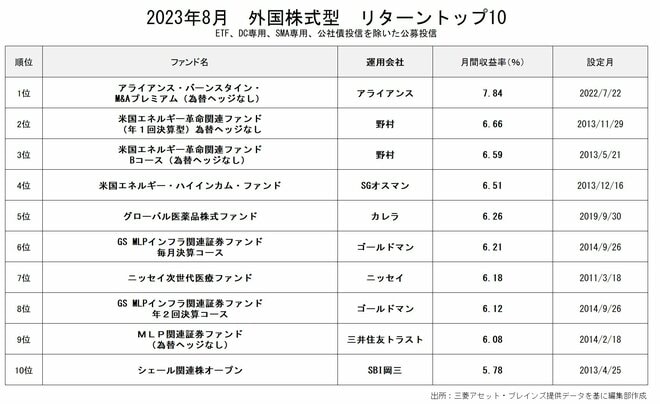 外国株式型ではエネルギー関連ファンドのパフォーマンスが好調