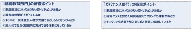 今回認定を受けた企業は、継続教育部門31社、ガバナンス部門16社の計47社。両部門での認定を受けた企業は14社となった。以下に認定企業を紹介する。