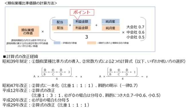 過去の経緯を振り返ると、類似業種比準価額は昭和39年に制度が作られたものです。その後、さまざまな改正が加えられてきましたが、基本的には「評価を下げる」方向での改正が続いてきました。つまり、「低めの評価でよい」という方向性で改正が重ねられてきました。平成29年には一部わずかに評価が上がった箇所もありましたが、全体としては下げる方向の改正が続いています。