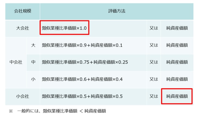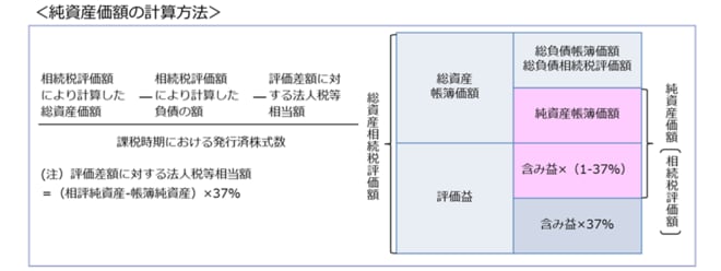 なお、先ほど簡単にご説明した「純資産価額」の計算方法は下の図の通りです。