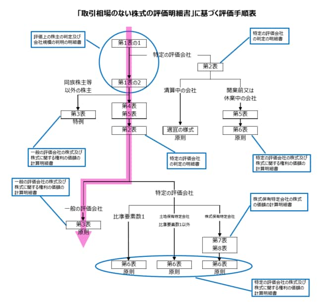 一方で、「価値のない人」は、「第1表の2」での会社規模の判定を経たあとに分岐します。具体的には、同族株主等以外の株主がこれに該当します。こうした価値のない人が株式を保有している場合、その株式にはそれほど高い価値は認められません。というのも、基本的に配当しか受け取れないためです。そのため、価値としては低く評価されるという考え方になります。