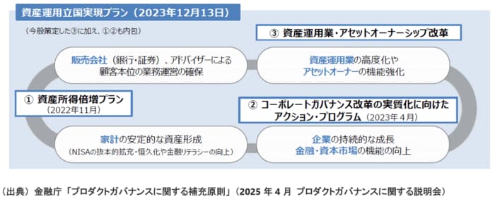 家計金融資産の運用を担う資産運用業が、顧客にとってより良い金融商品を提供できるようになれば、これらの動きと相乗効果が期待できると考えられています。