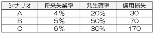 これは「一定範囲の生じ得る結果を評価することによって算定される偏りがなく確率加重された金額」とされ、「すべての考え得るシナリオを特定する必要はない」とされるものの、基本的にはいくつかのシナリオを立て、それらのシナリオにおける信用損失とそれぞれのシナリオの発生確率を予想したうえで、これらを加重平均する、などの方法が示されている。
