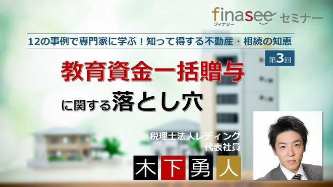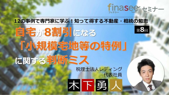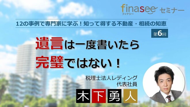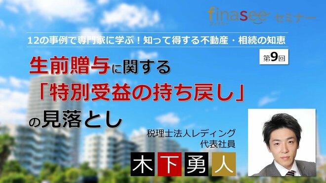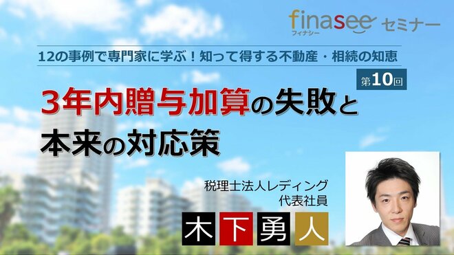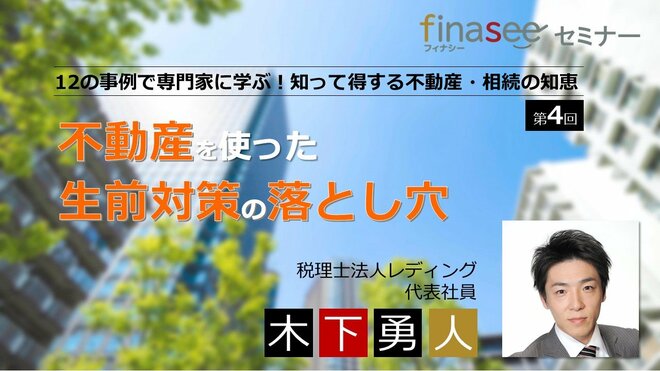 講師は、相続専門税理士法人を設立し、不動産・財産コンサルティング実績の豊富な税理士法人レディング 代表税理士の木下勇人氏。
